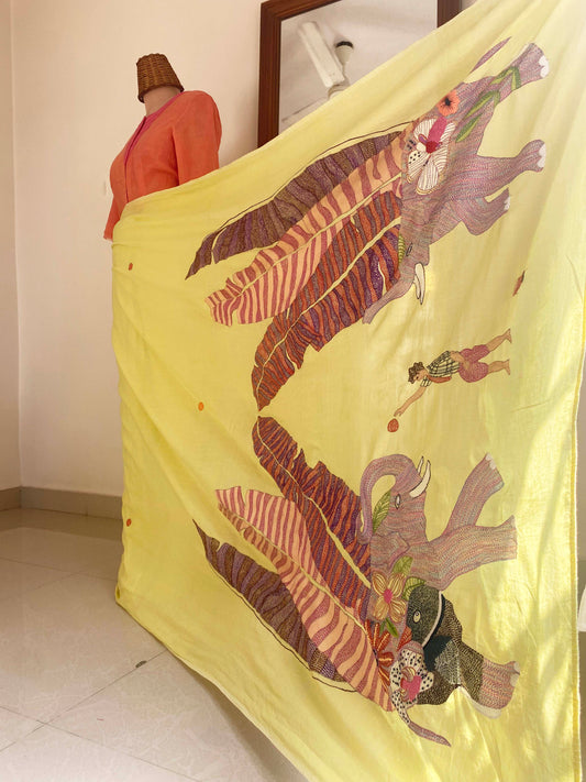 Haathi Saree - Lemon Yellow
