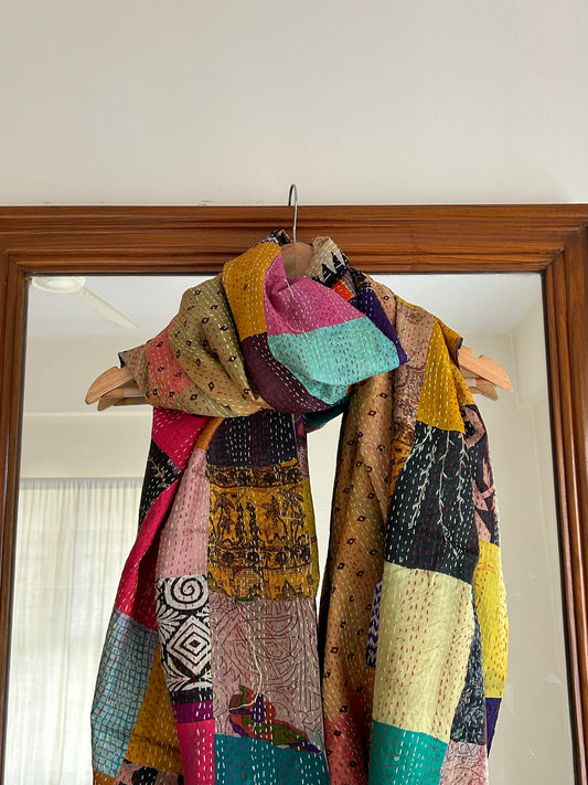 Sold outKantha Patchwork scarf- Blue