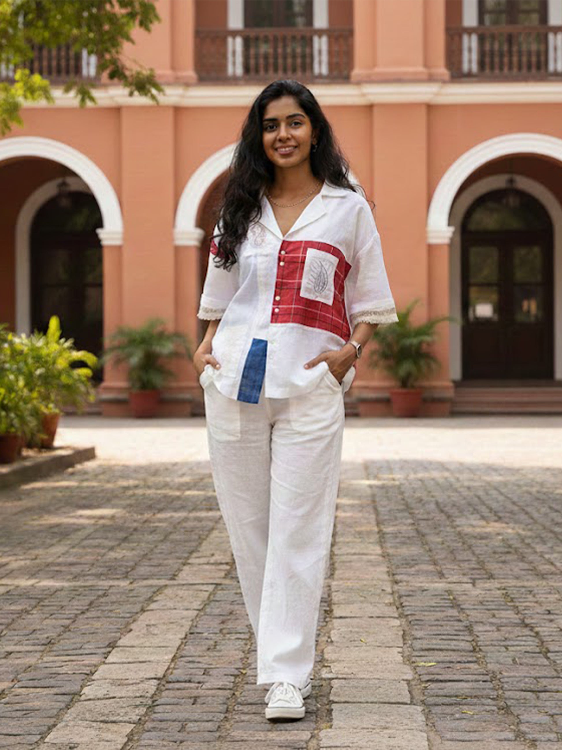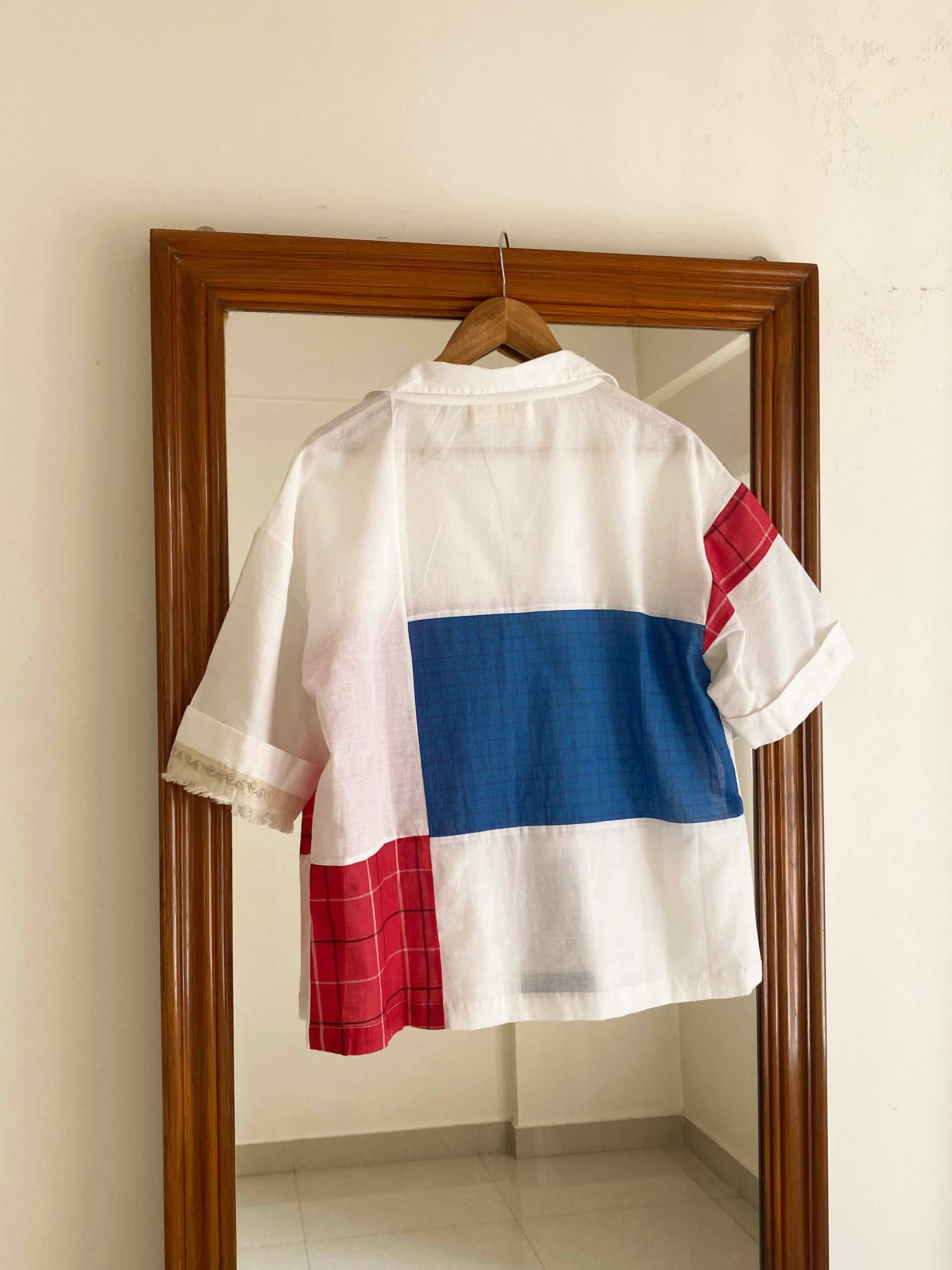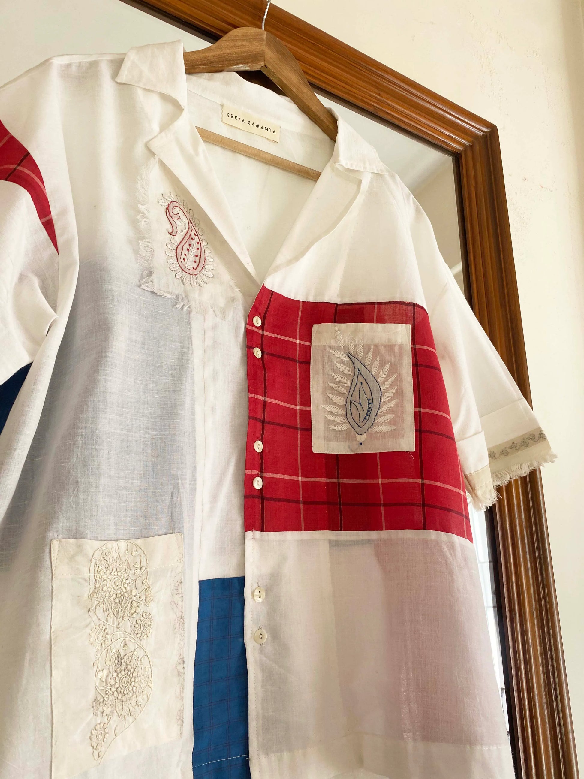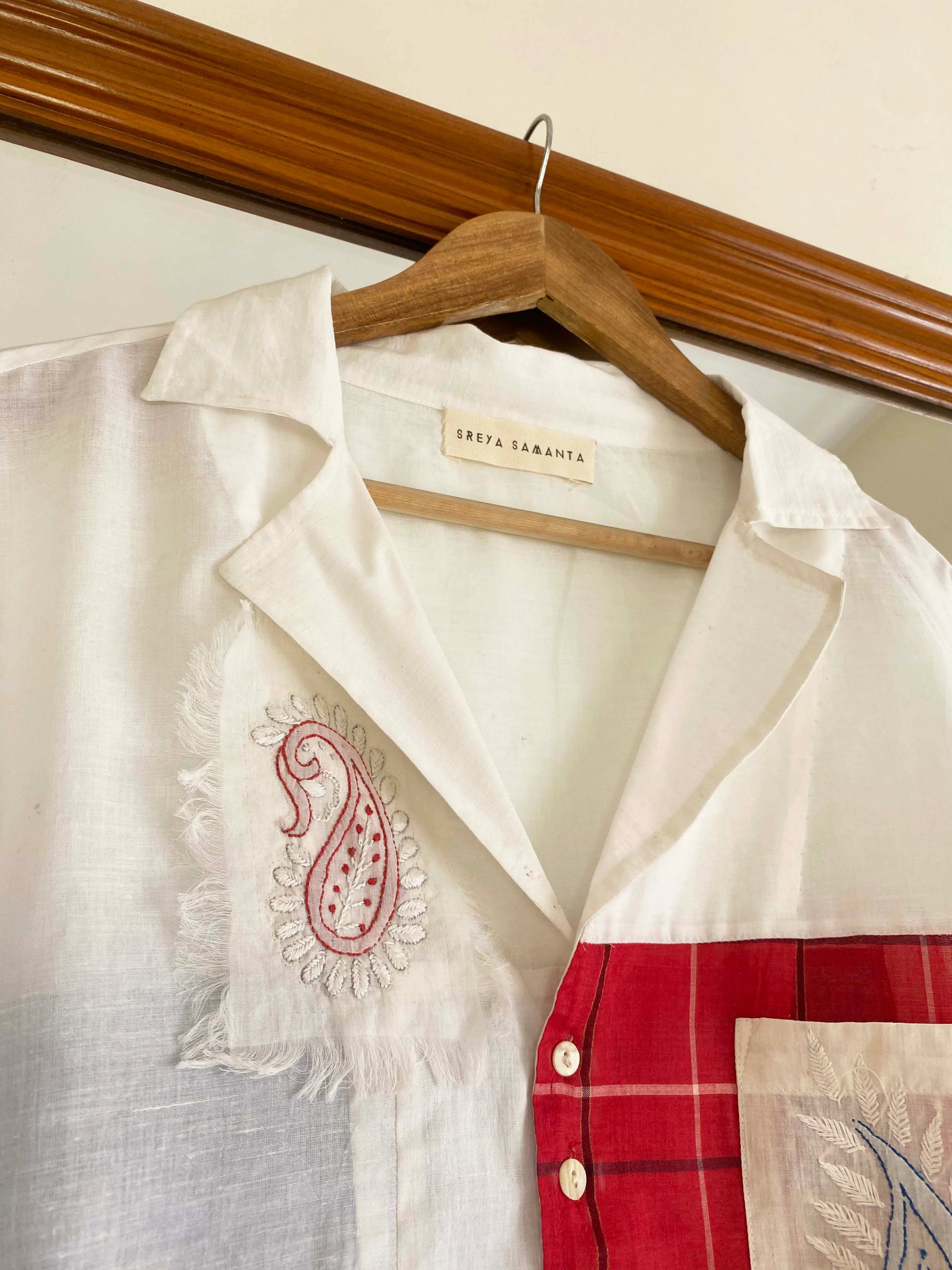 Our patched shirt features a relaxed silhouette with embroidered patches.
