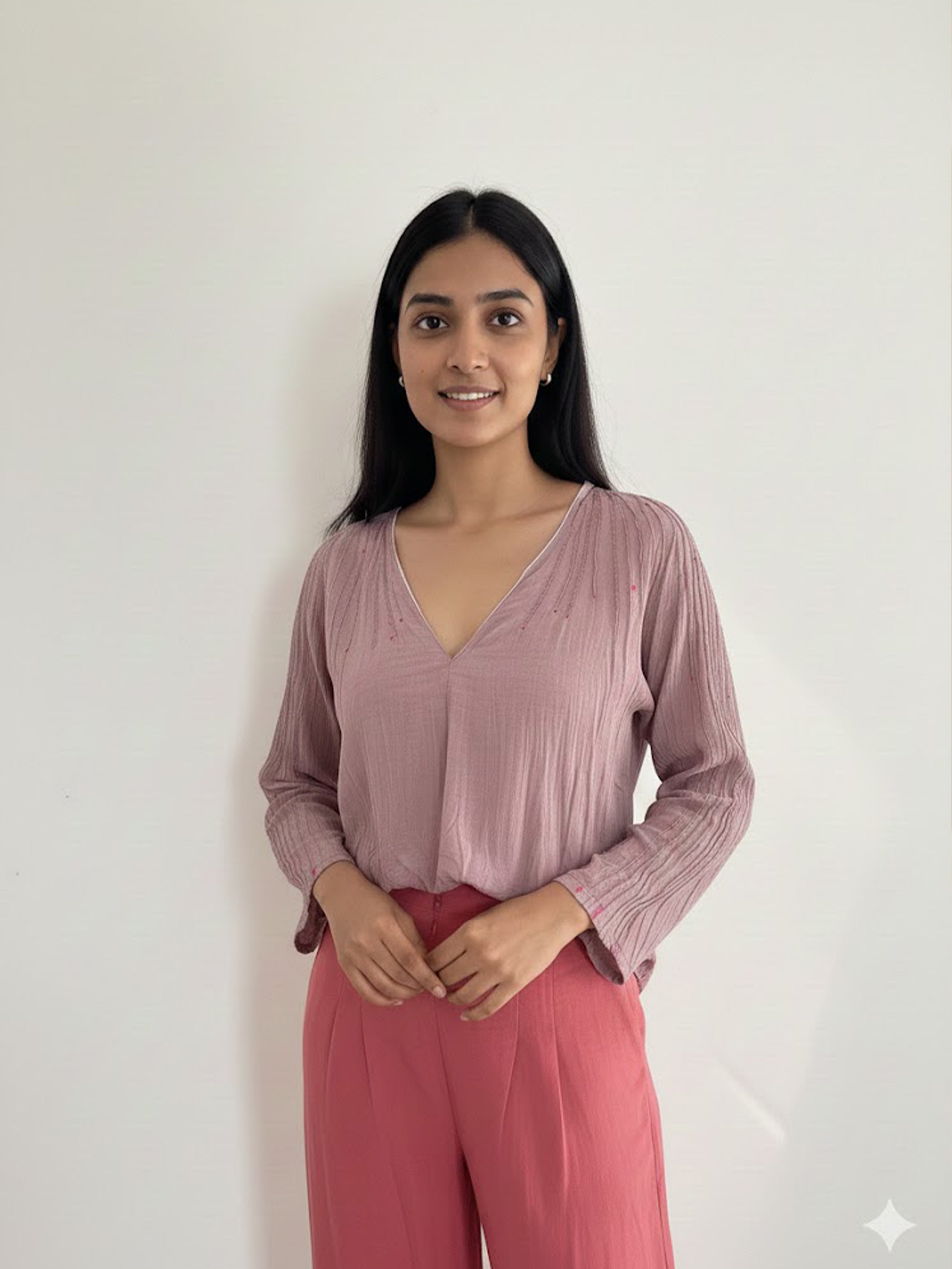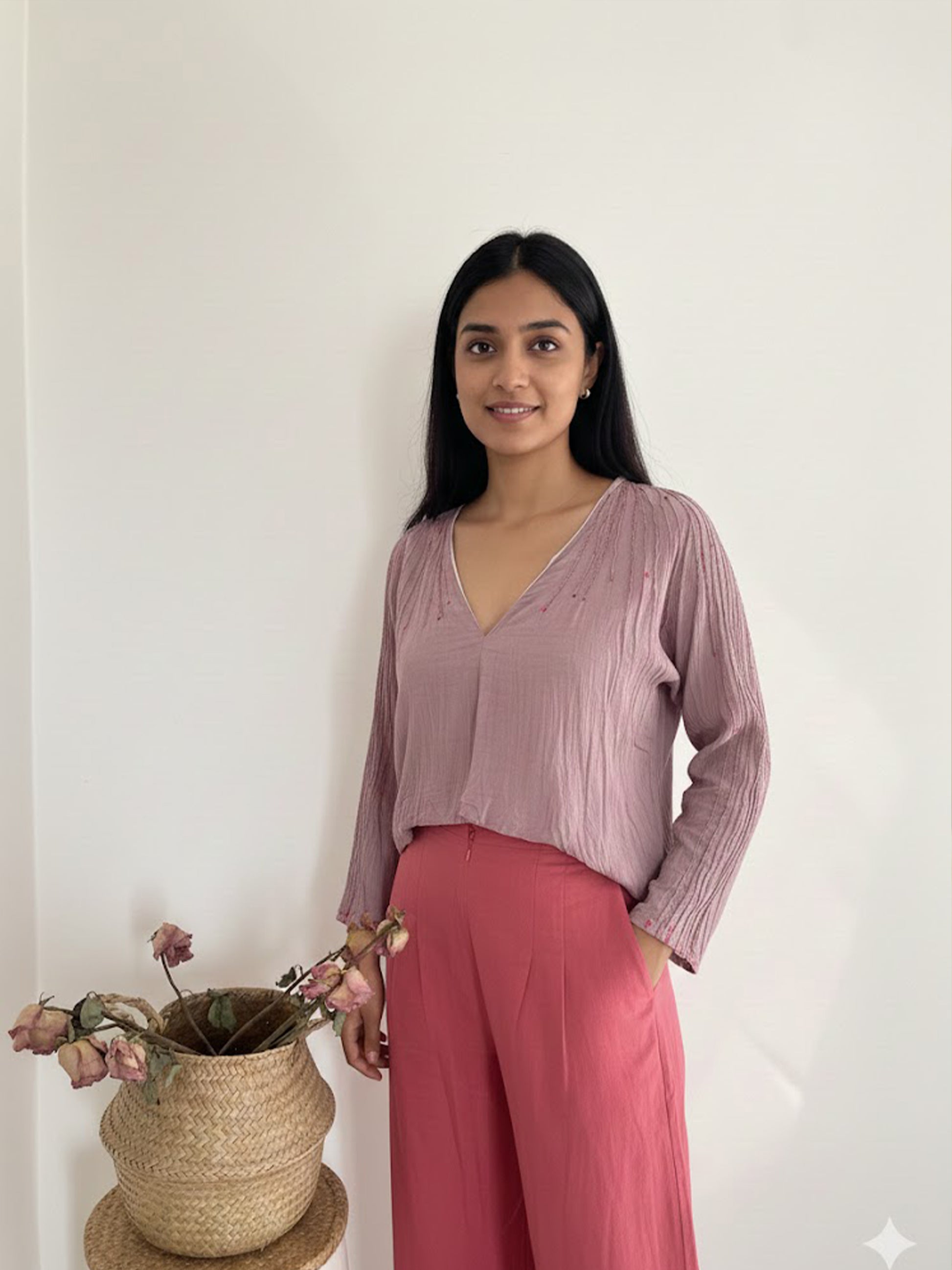 Hand wrinkled and textured with kantha stitches, our Ambu Top can be worn on the reverse side too on days you need the White sans any whimsy.