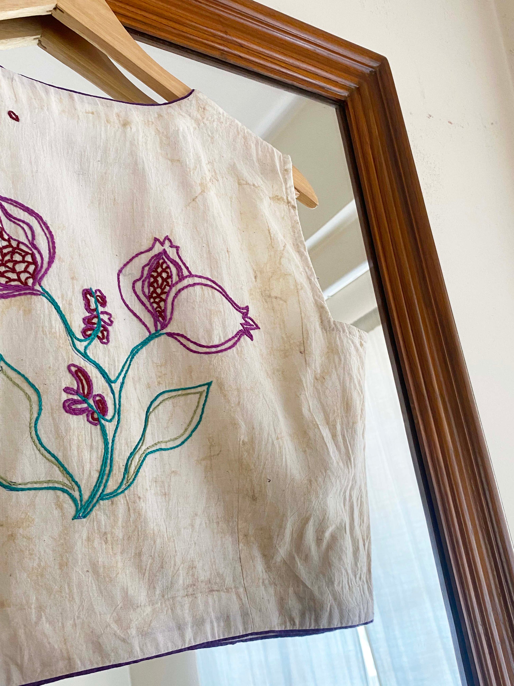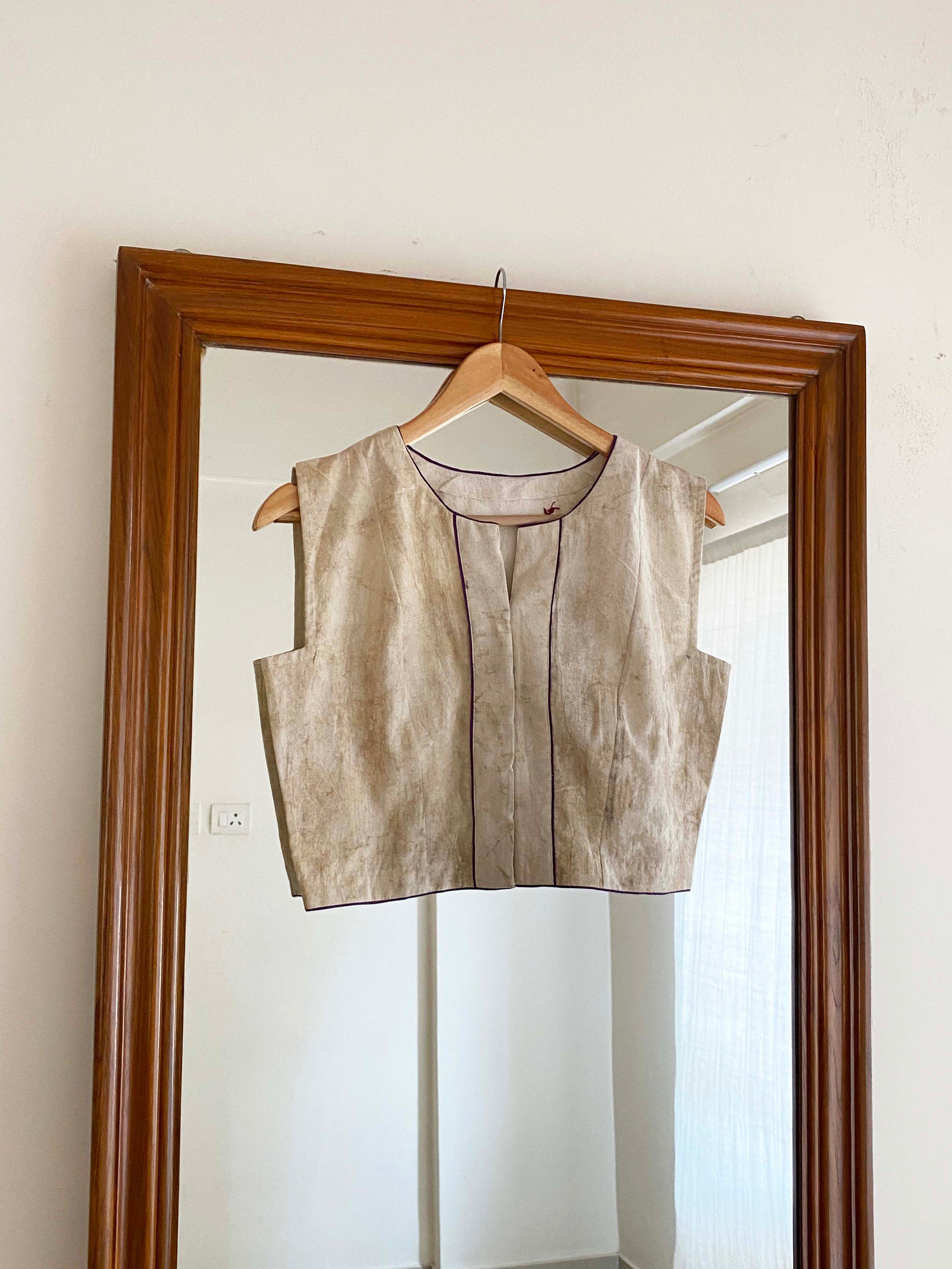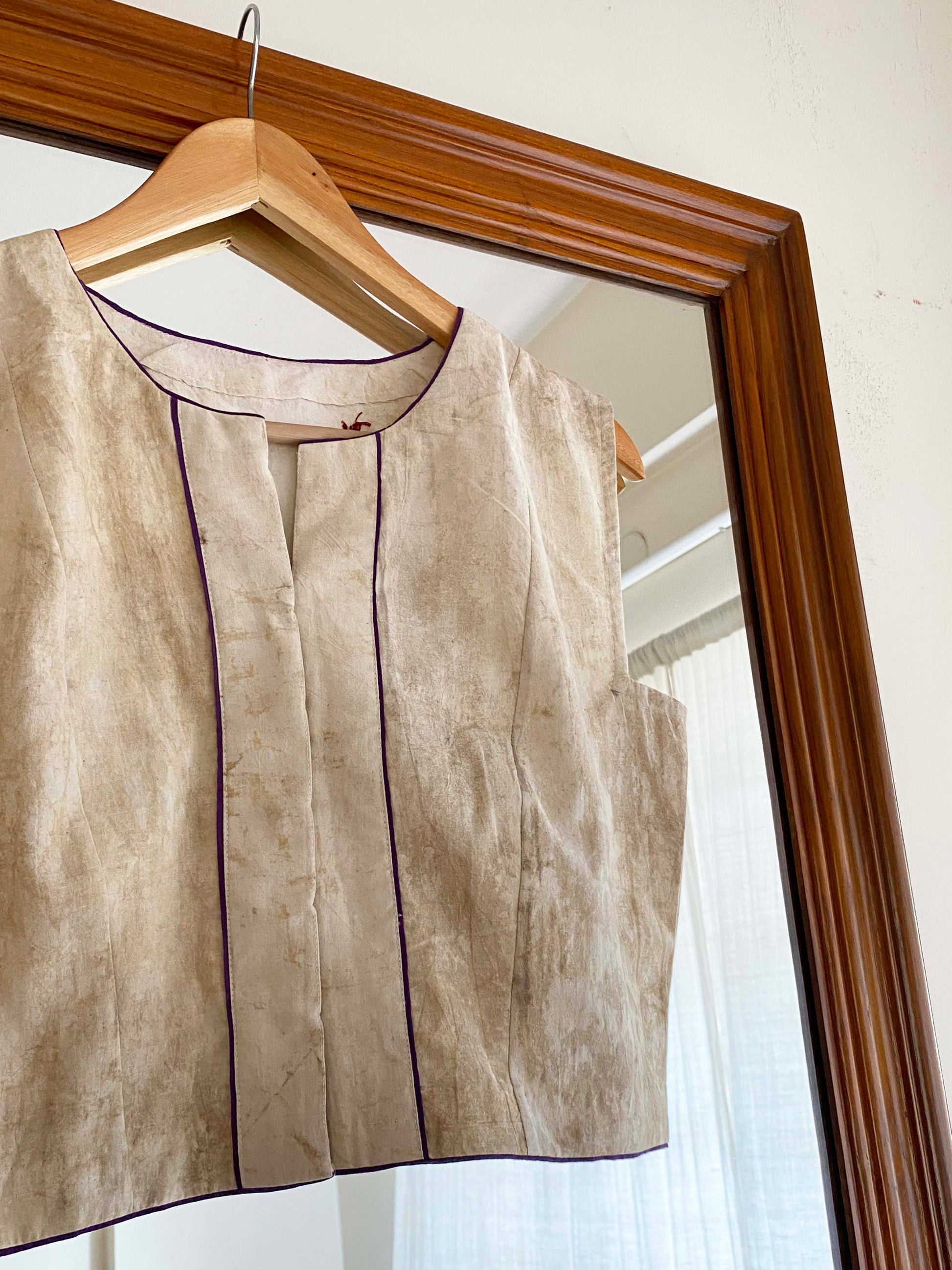 Our playful blouse comes in a tone of earthy shade with embroidery of Anar at the back and piping in the front, the piece is accentuated with a soft gleam of glamour.