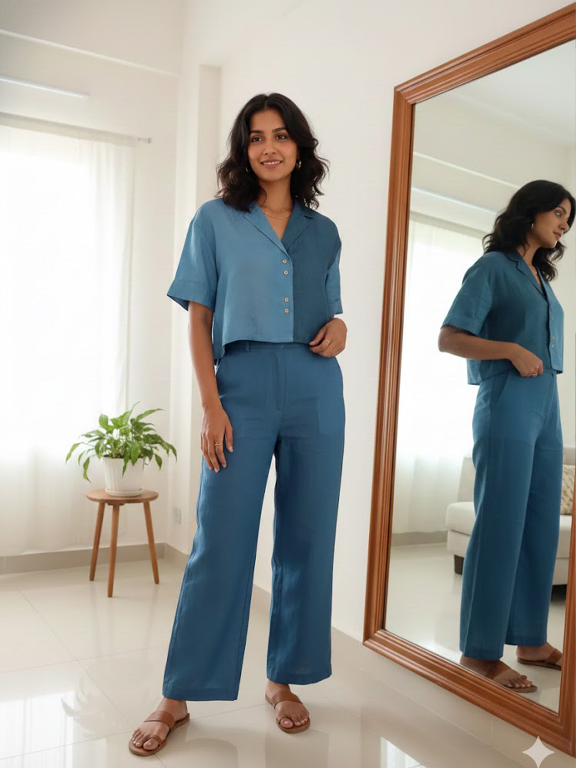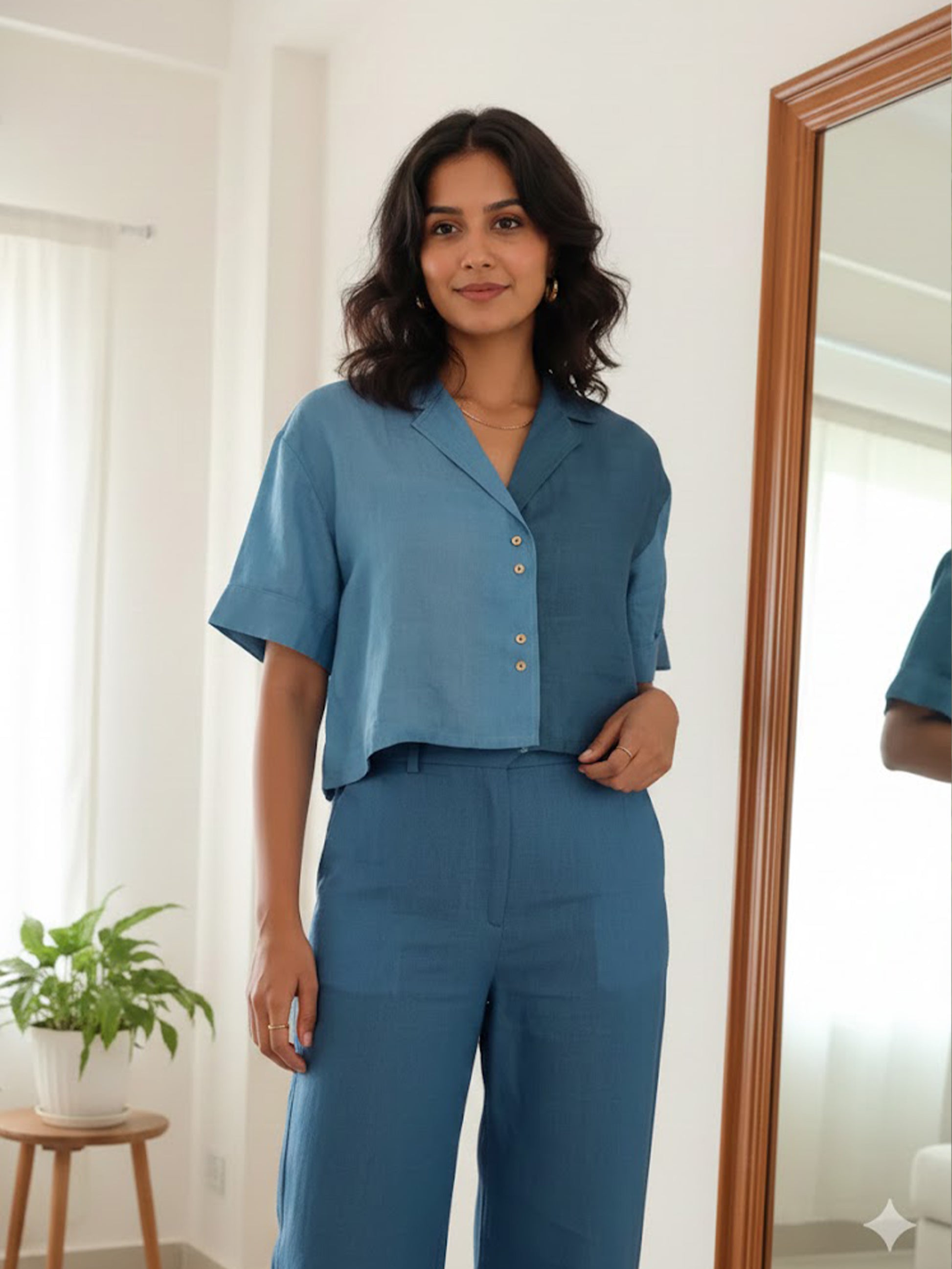 A modern and minimalistic silhouette in fine tussar silk, this fits in seamlessly in your wardrobe of distinctive pieces.