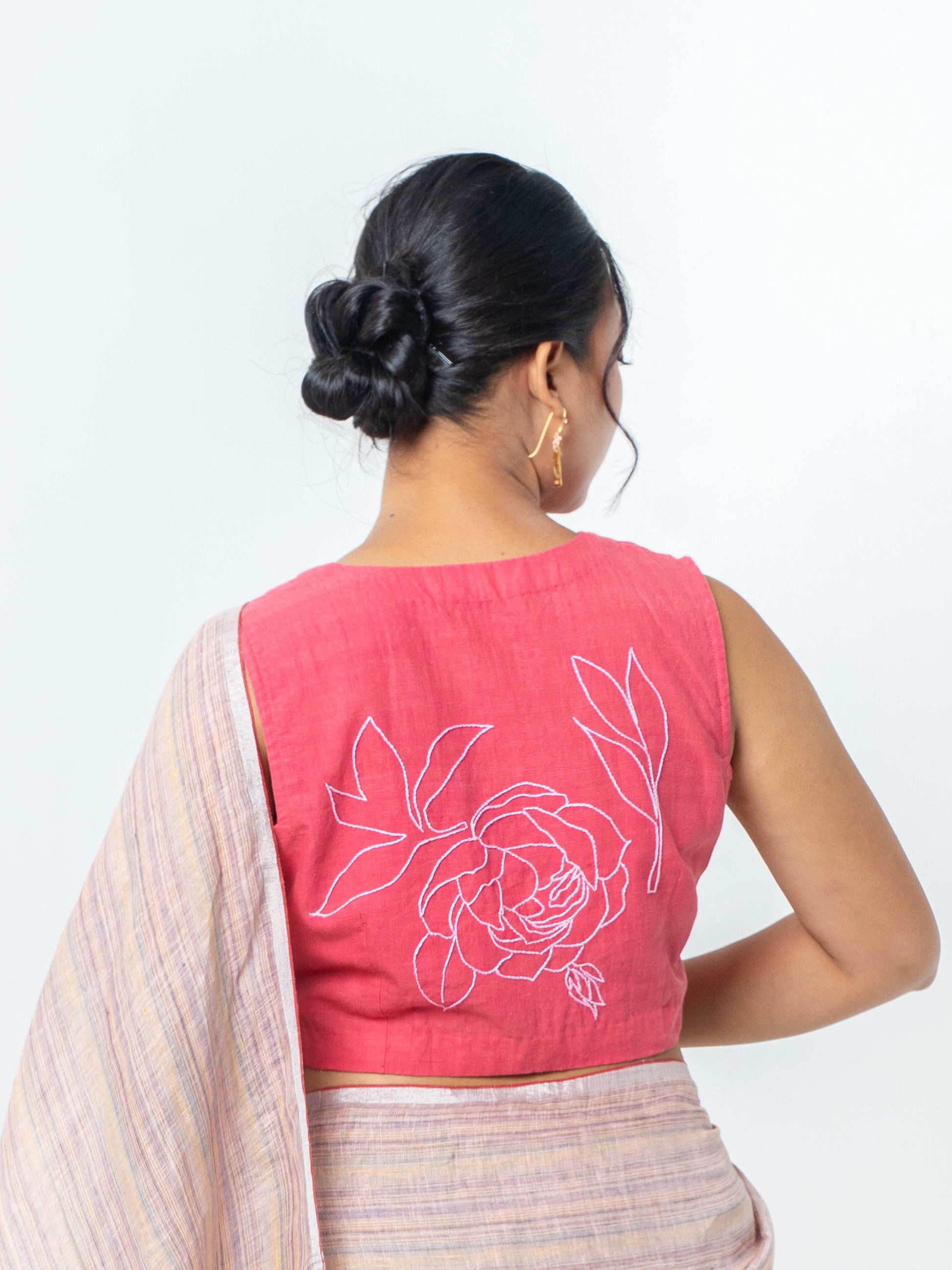 Our playful blouse comes in a tone pink with embroidery of rose in light pink color at the back to give the feeling of a rose beauty.