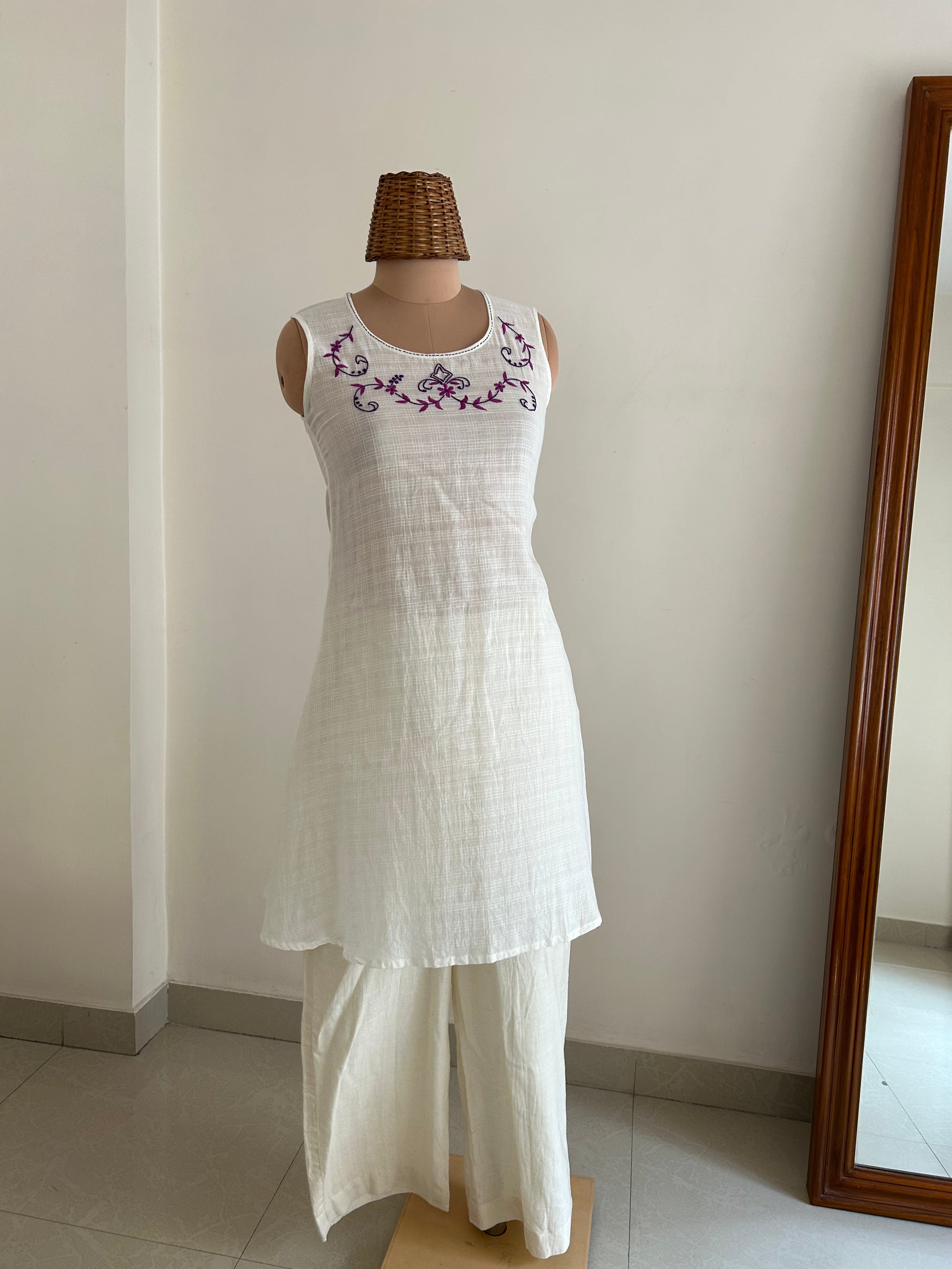 - Hand embroidered
