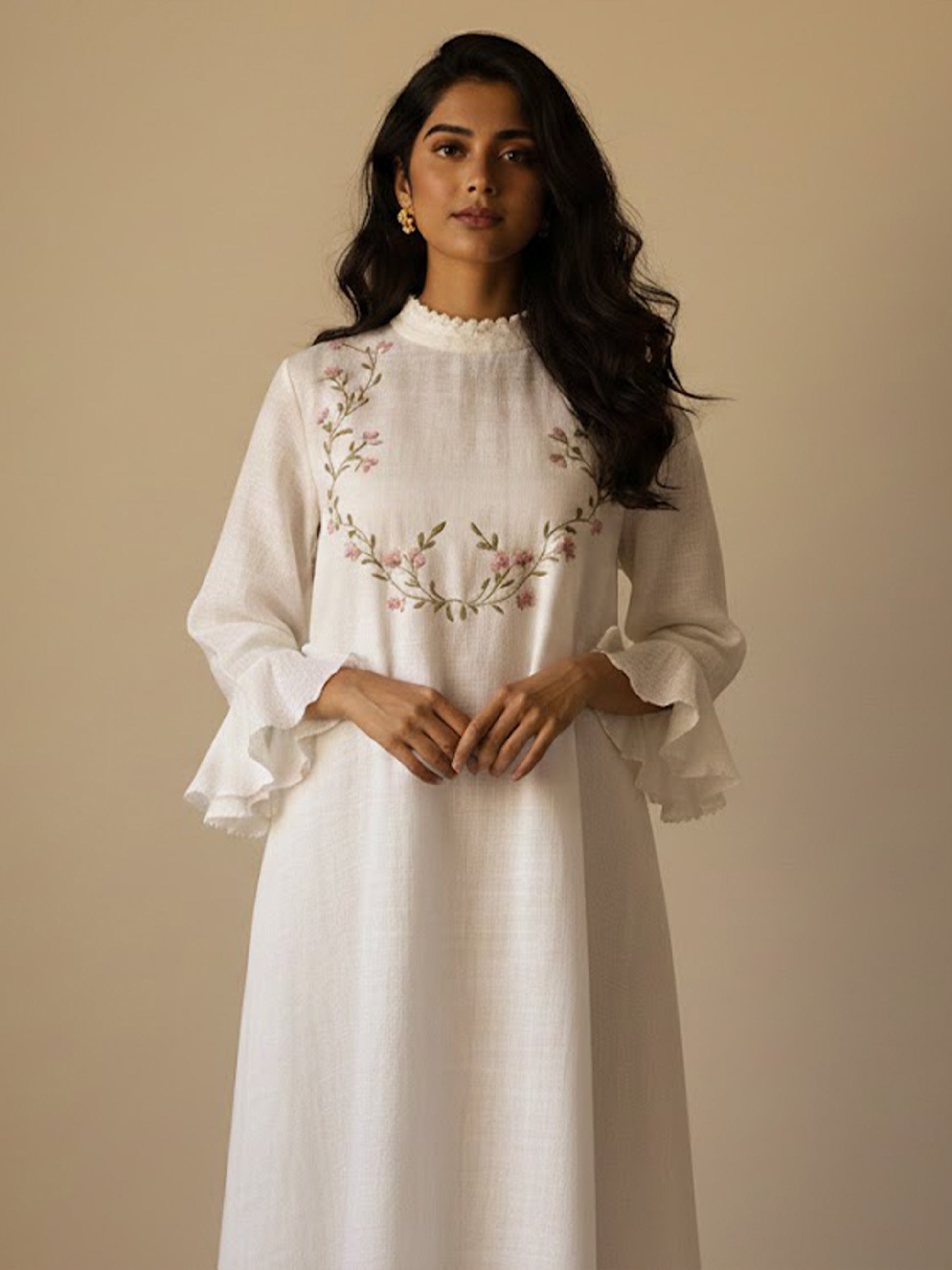 - Hand embroidered