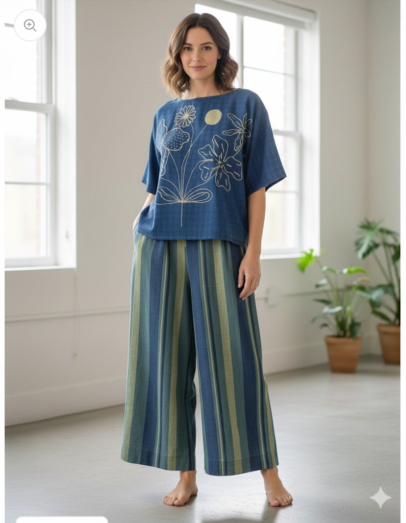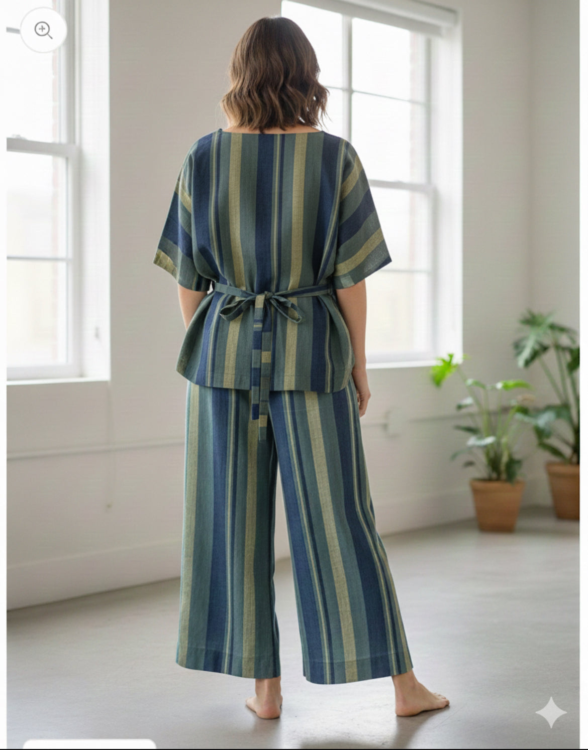 The top is more of a relaxed easy breezy style paired with the pants.