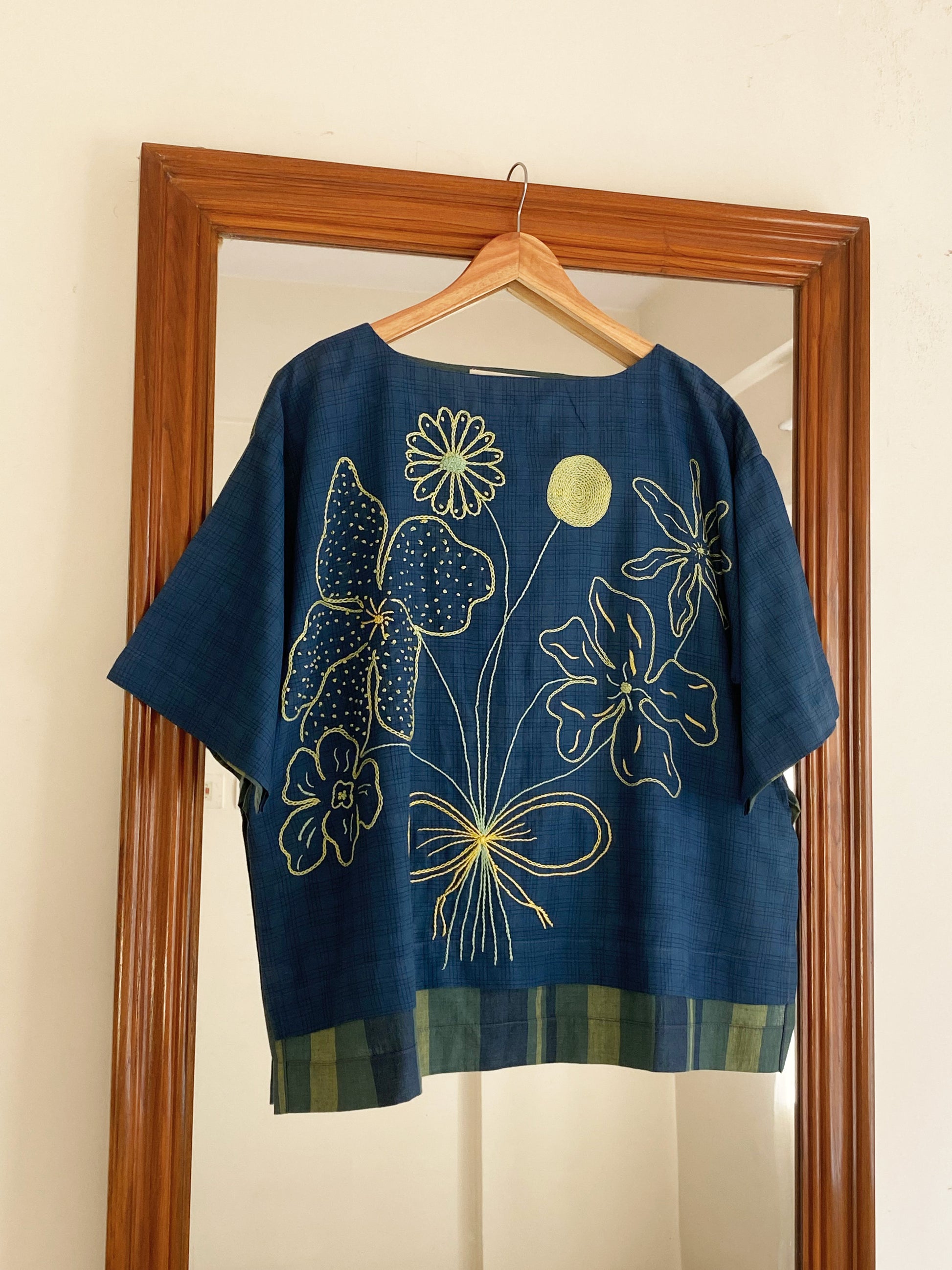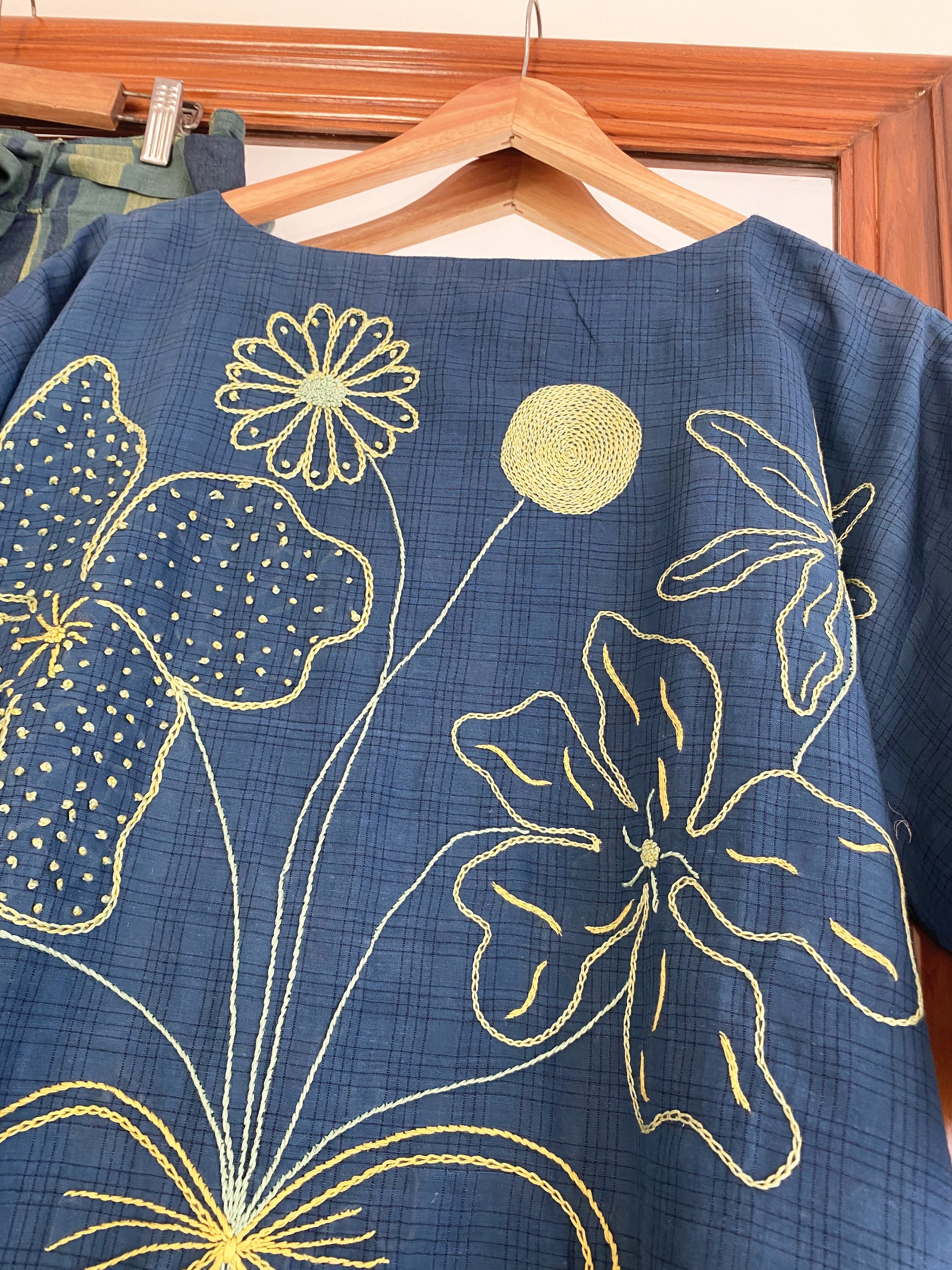 - Hand embroidered