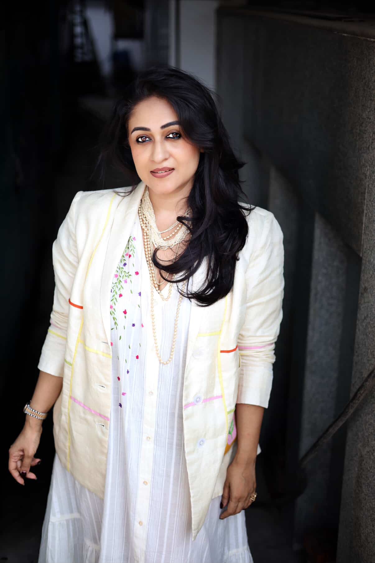 An easy and modern silhouette jacket. Our 'Woman Jacket' features delicate embroidered details that enhance the look and giving more details by multicolor piping. This piece features pockets on the front panels along with a collar style.